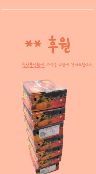 [후원] 페이지 정보 작성자 운영자 작성일21-11-15 10:44 조회310회 댓글0건 관련링크 목록 본문 2021.11.13.(토)무명으로 죽전원 앞으로 귤 후원해 주고 가셨습니다.따뜻한 마음 감사합니다 댓글목록 등록된 댓글이 없습니다. 목록