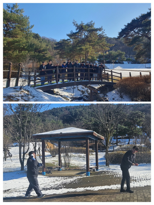 차 한 잔으로 몸을 녹인 뒤에는 기다리던 즐거운 시간이 이어졌습니다. 오랜만에 동심으로 돌아가 눈을 가지고 다양한 놀이를 하며 웃음꽃을 피웠는데요. 눈을 만지며 장난을 치고, 함께 웃고 움직이는 그 순간만큼은 나이도 걱정도 잠시 잊은 채 겨울을 마음껏 즐길 수 있었습니다.